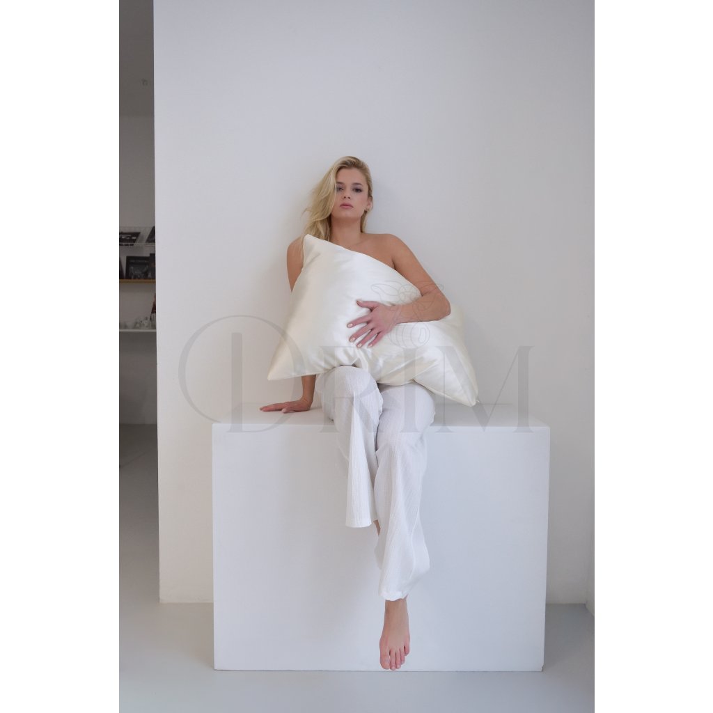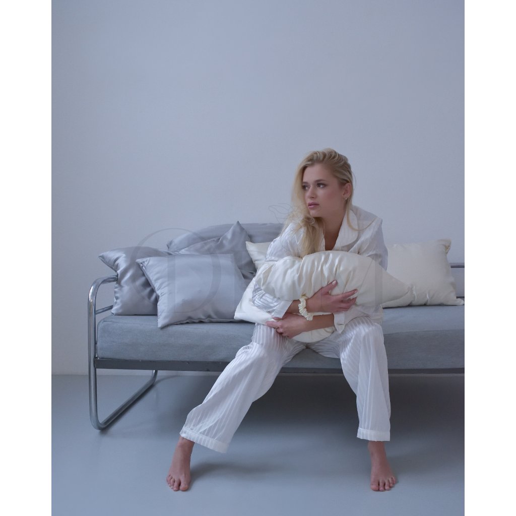 Šijeme je ručně v Česku v naší malé dílně v Beskydech. Vybíráme pouze nejvyšší kvalitu 100% přírodního hedvábí (morušové hedvábí) z nejdelších motýlích vláken označkovaných garde 6A. Hedvábná látka v saténové úpravě - extrémně lesklá, jemná a hladká na dotek, Splňuje všechny certifikace EU.
